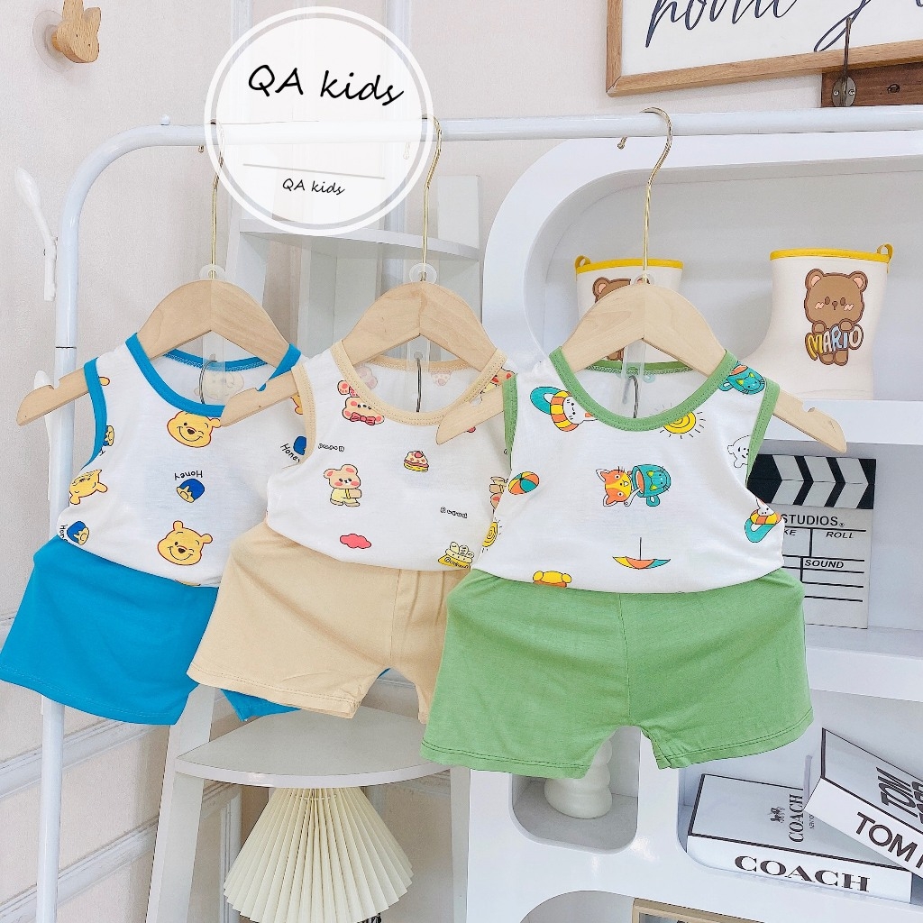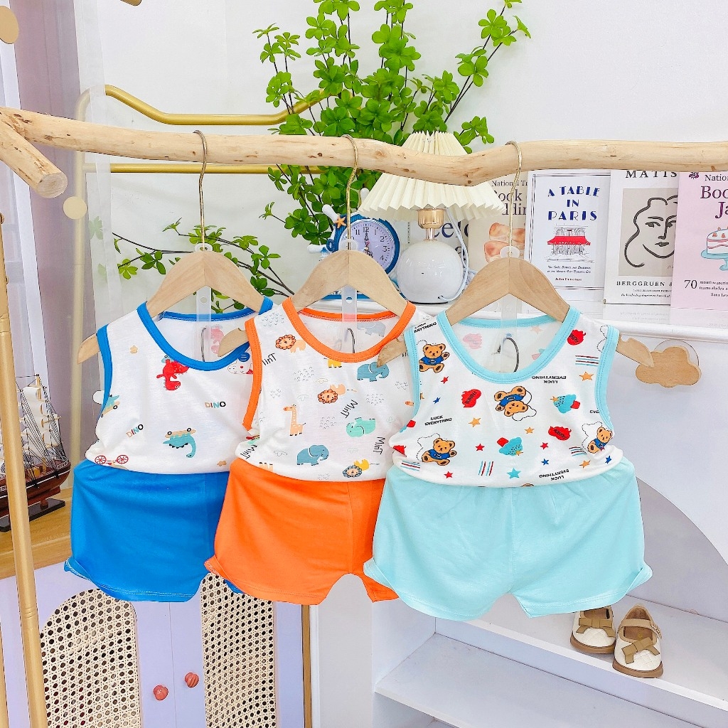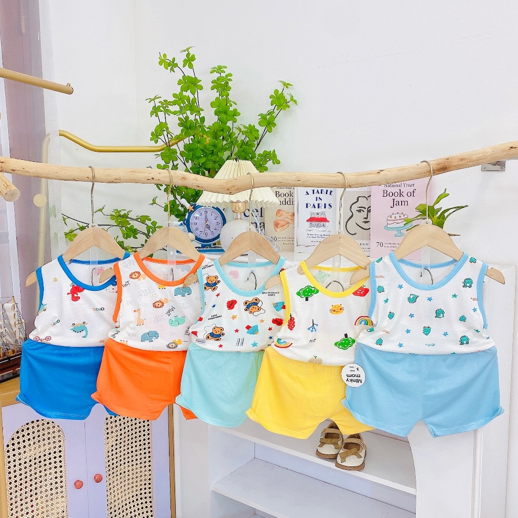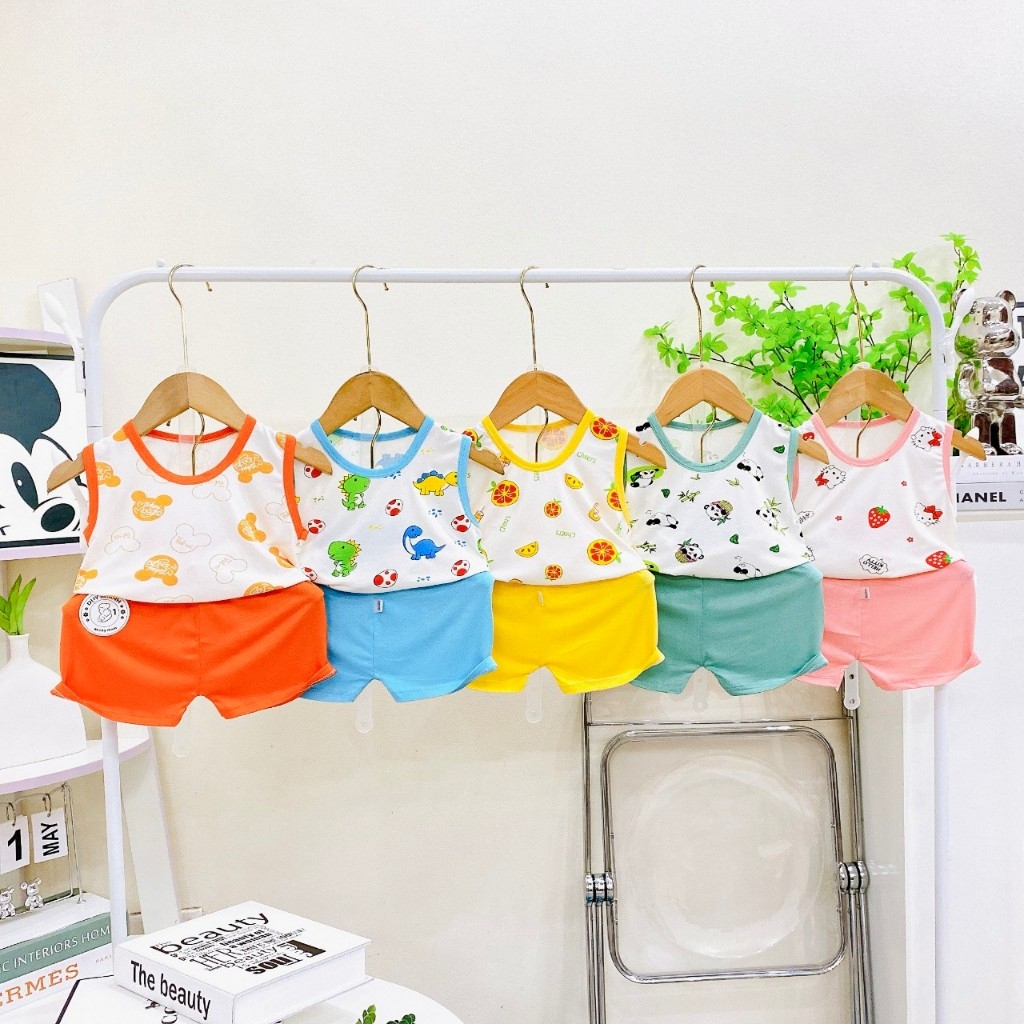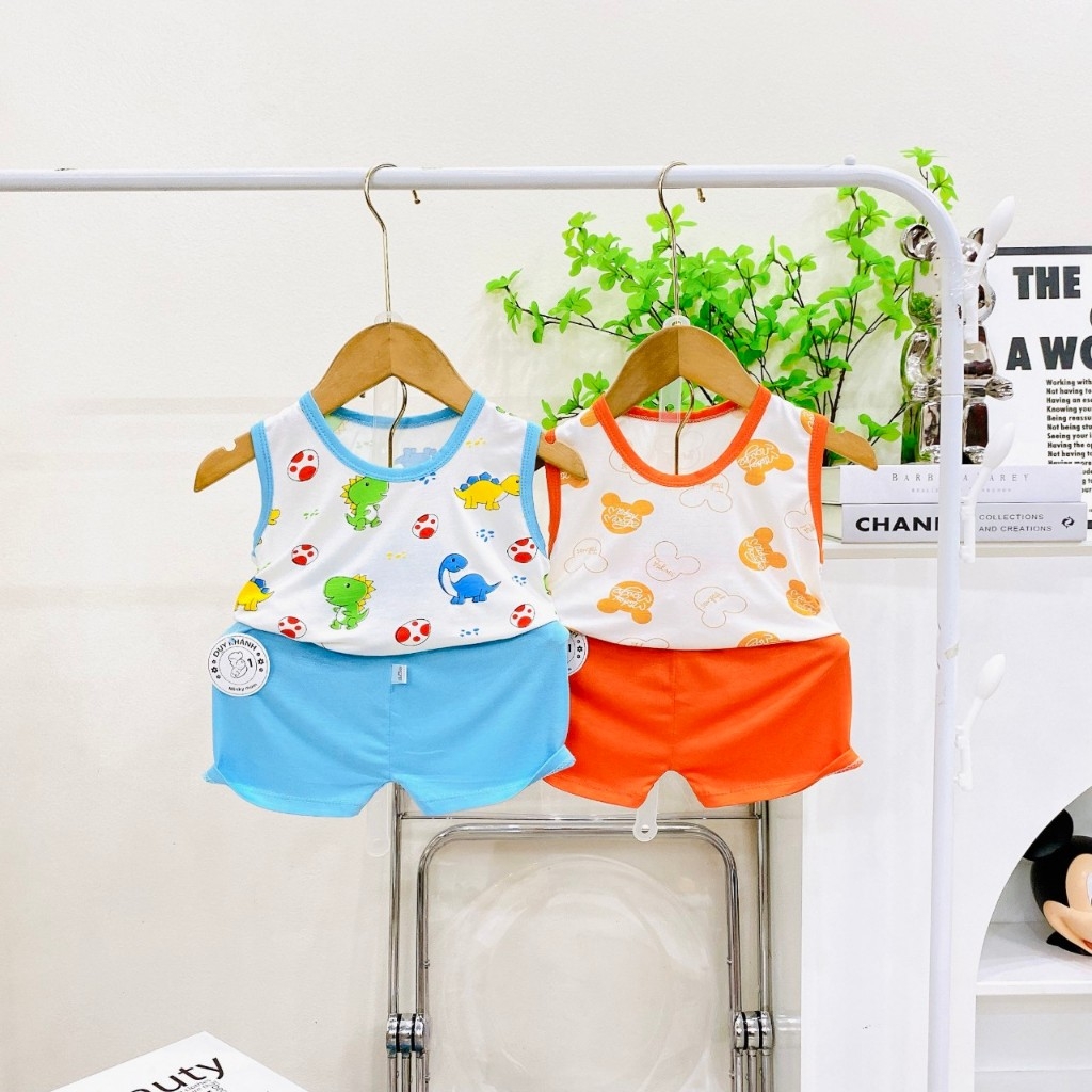[A197 Mềm, Mát, Được Chọn Mẫu] Bộ Ba Lỗ Thun Lạnh Minky Họa Tiết Trắng Phối Mầu Cho Bé Trai Bé Gái