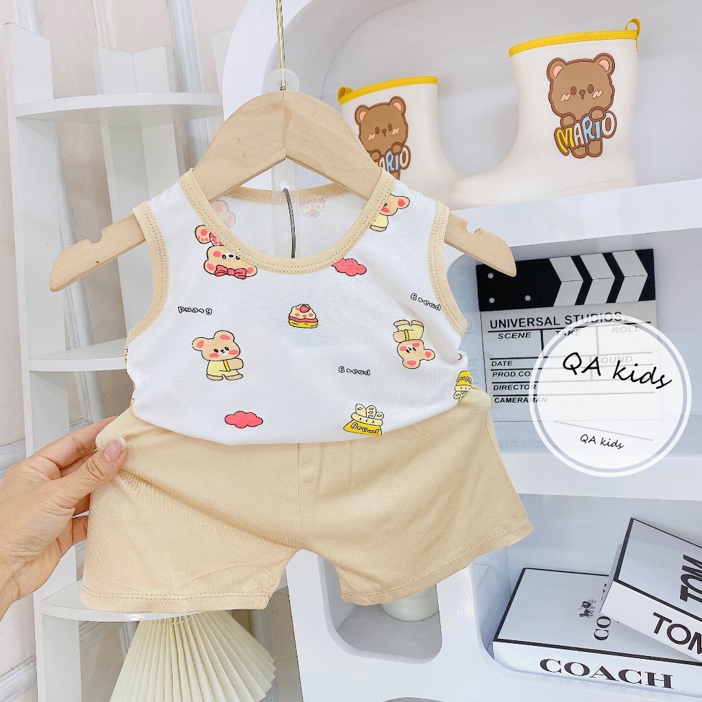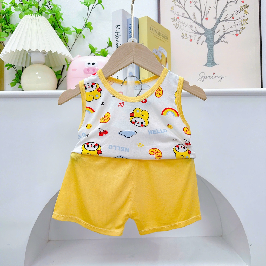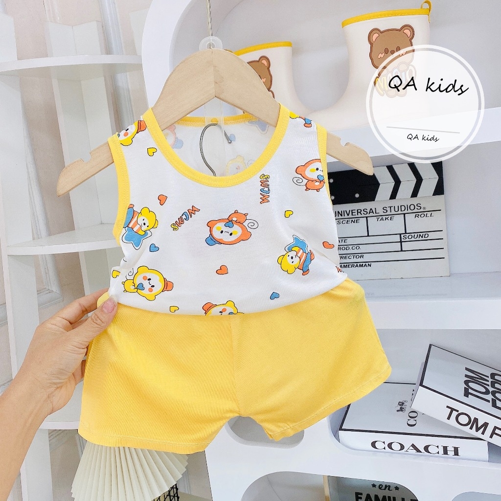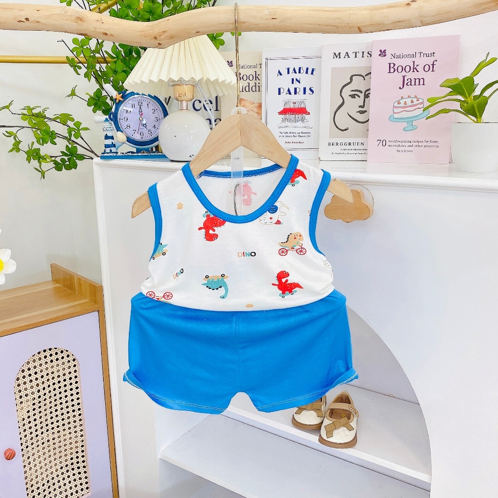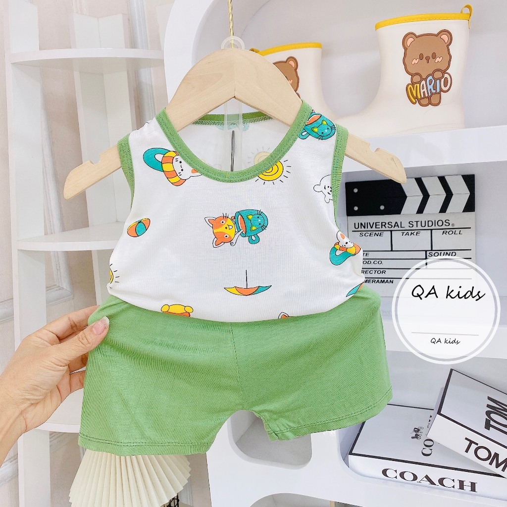 [A197 Mềm, Mát, Được Chọn Mẫu] Bộ Ba Lỗ Thun Lạnh Minky Họa Tiết Trắng Phối Mầu Cho Bé Trai Bé Gái