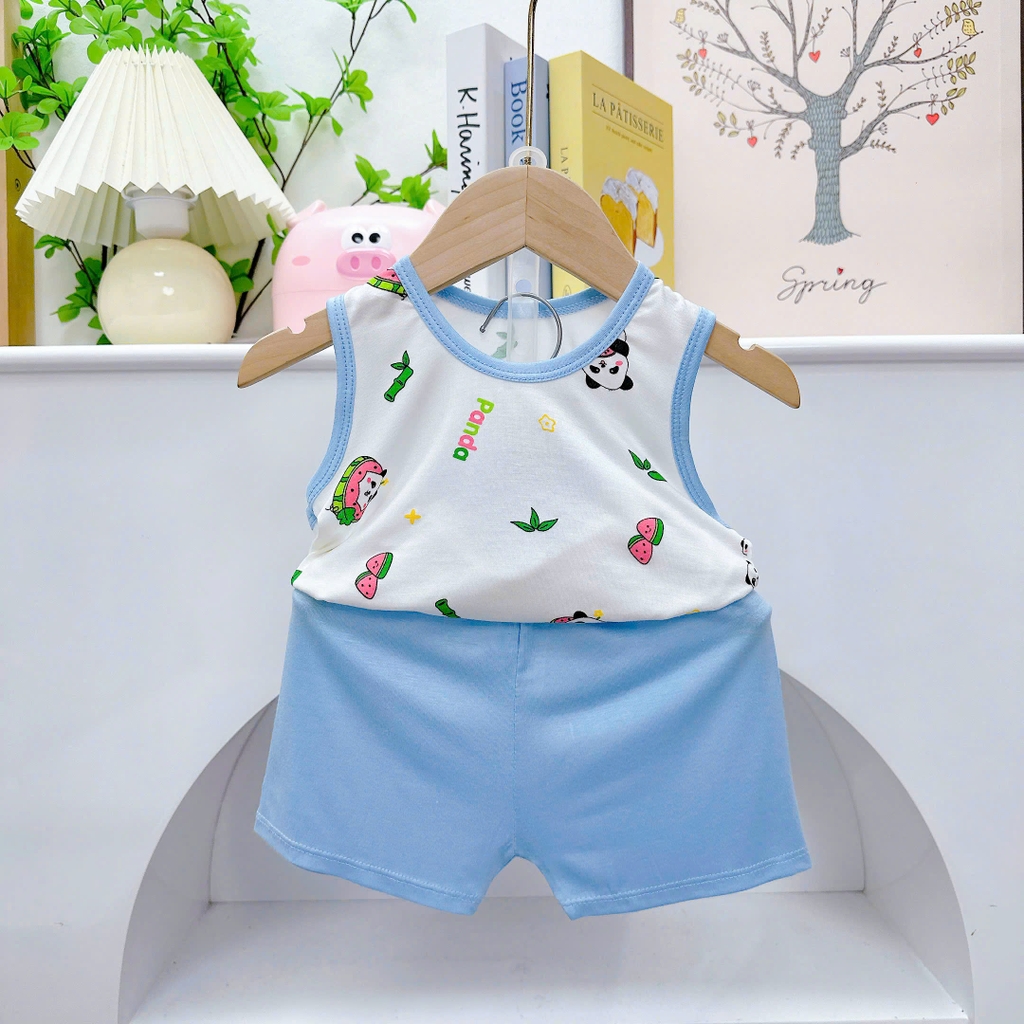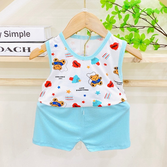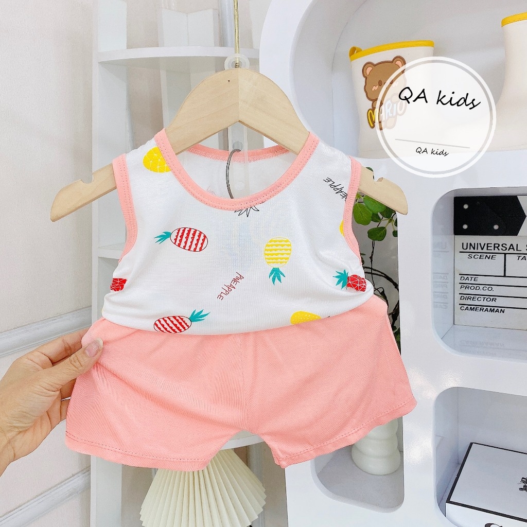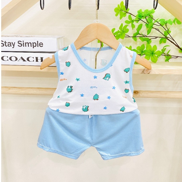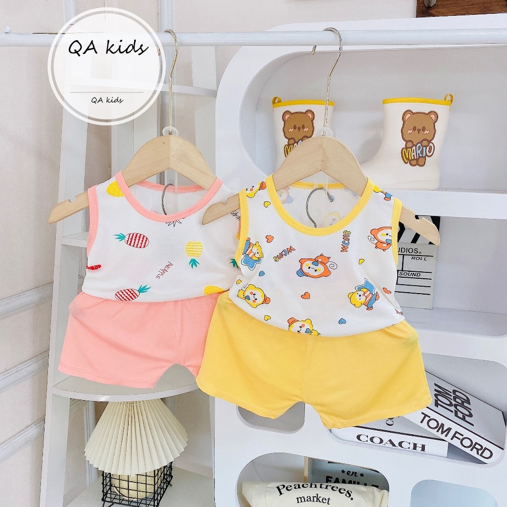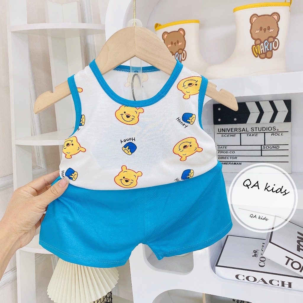 [A197 Mềm, Mát, Được Chọn Mẫu] Bộ Ba Lỗ Thun Lạnh Minky Họa Tiết Trắng Phối Mầu Cho Bé Trai Bé Gái