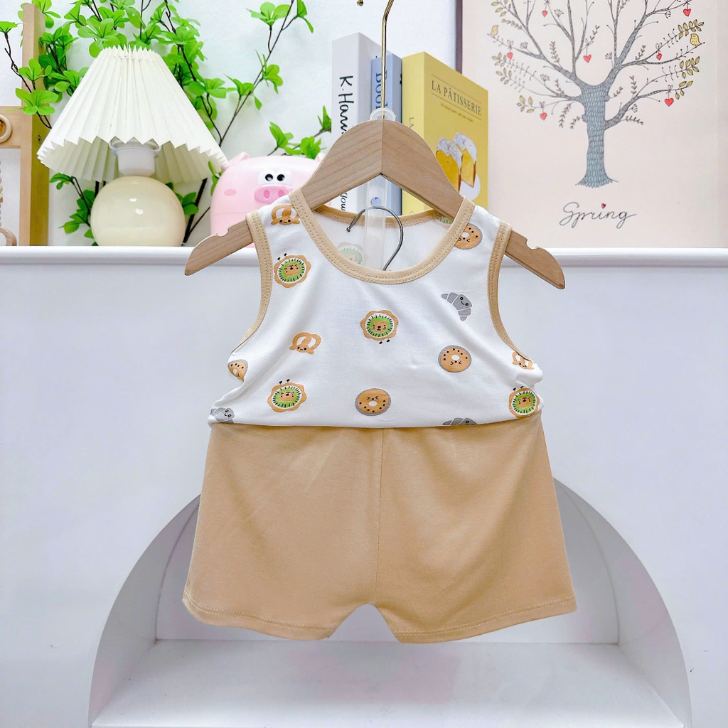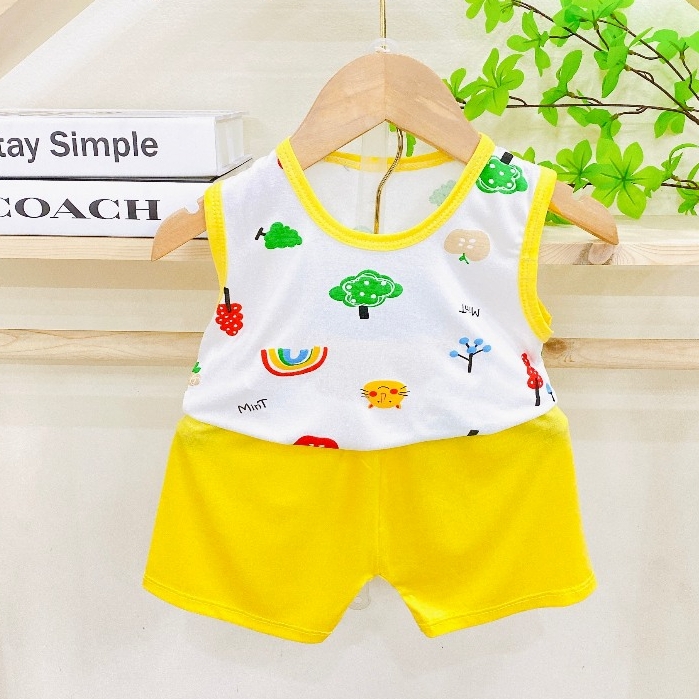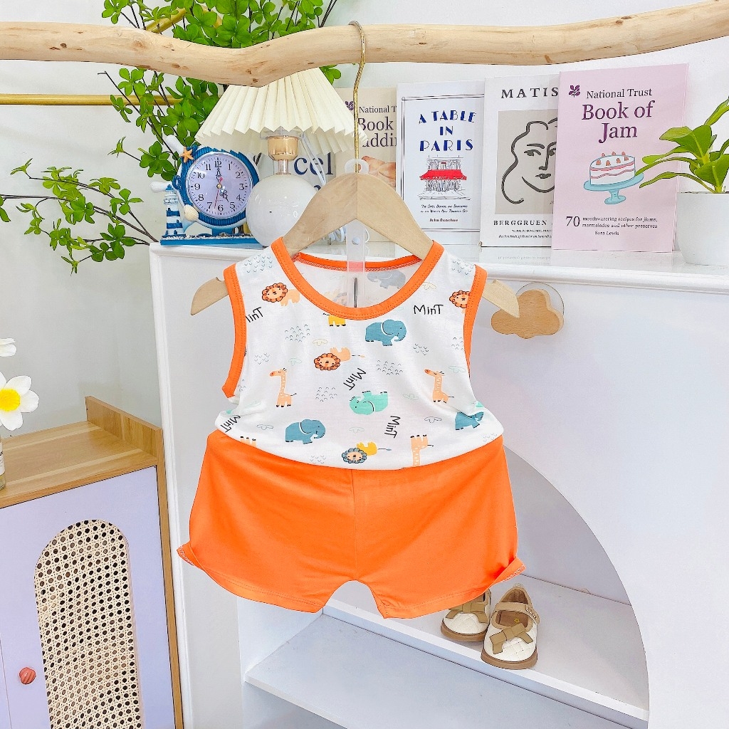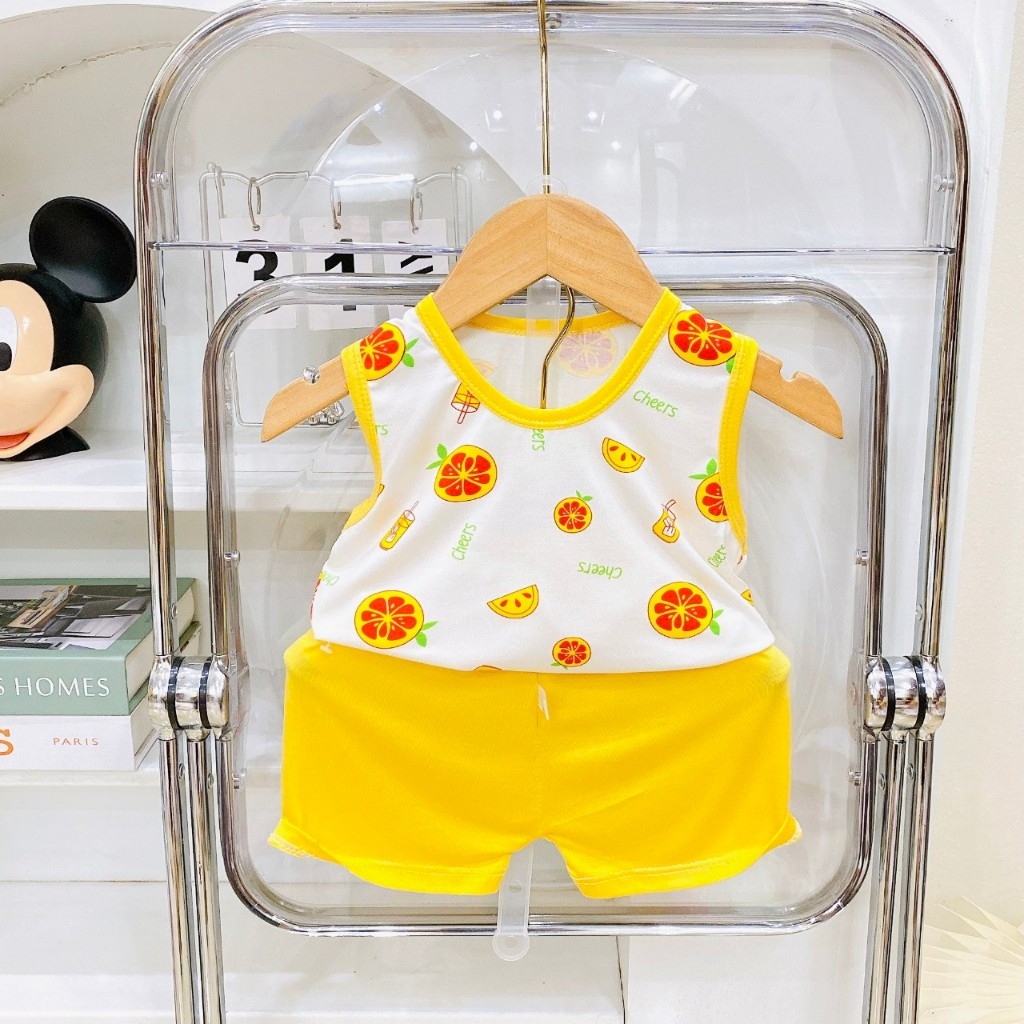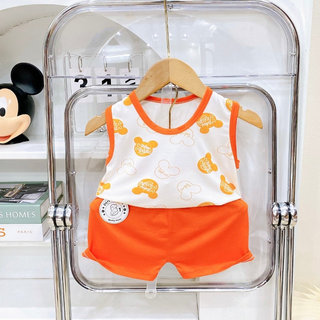 [A197 Mềm, Mát, Được Chọn Mẫu] Bộ Ba Lỗ Thun Lạnh Minky Họa Tiết Trắng Phối Mầu Cho Bé Trai Bé Gái