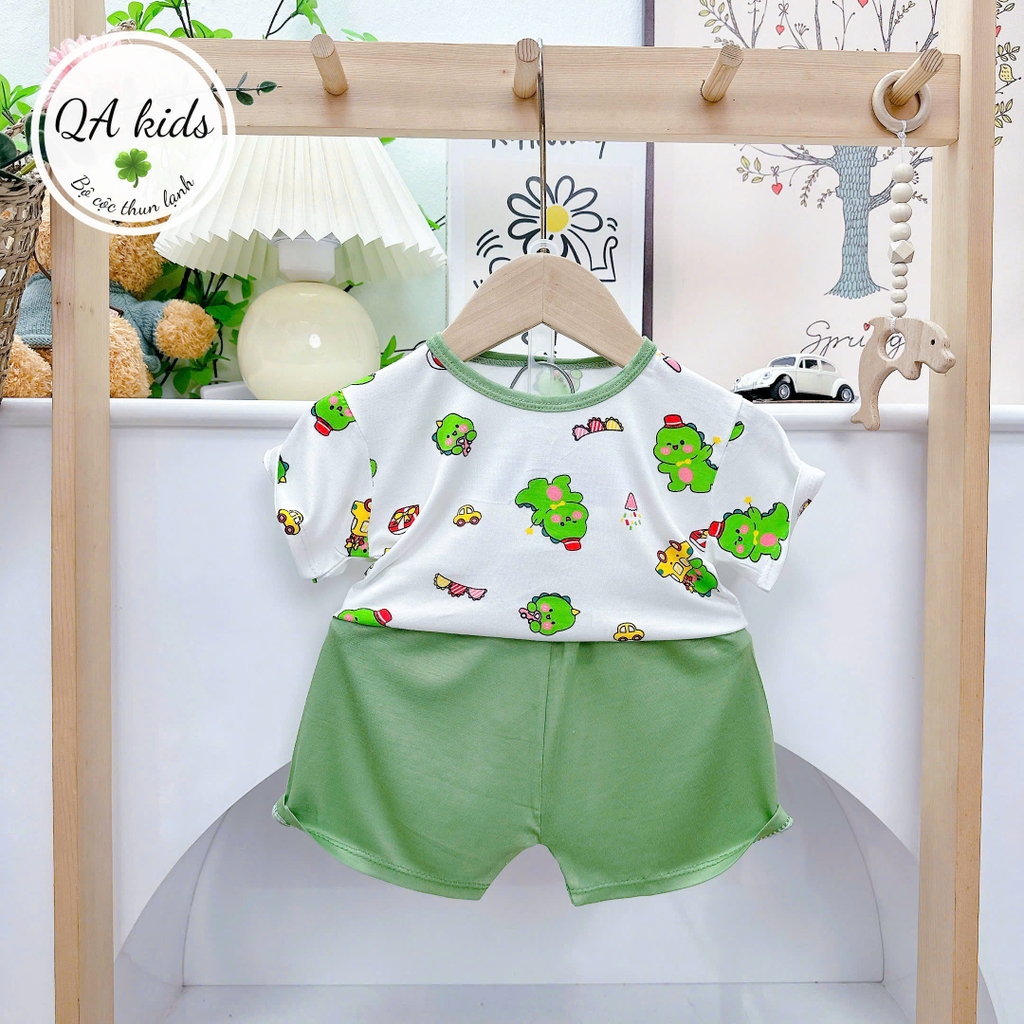 - Kiểu dáng: Áo cộc quần đùi, Áo họa tiết trắng phối viền cổ, mầu quần cùng với mầu viền cổ áo
