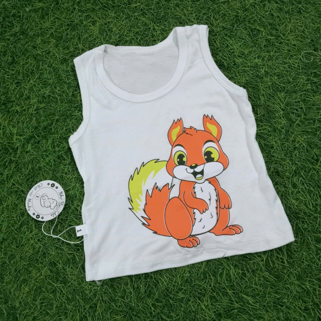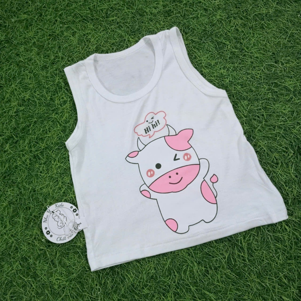 [A244 Mềm, Mát] Áo Ba Lỗ In Hình Nền Trắng Chất Vải Minky Cho Bé Trai Bé Gái